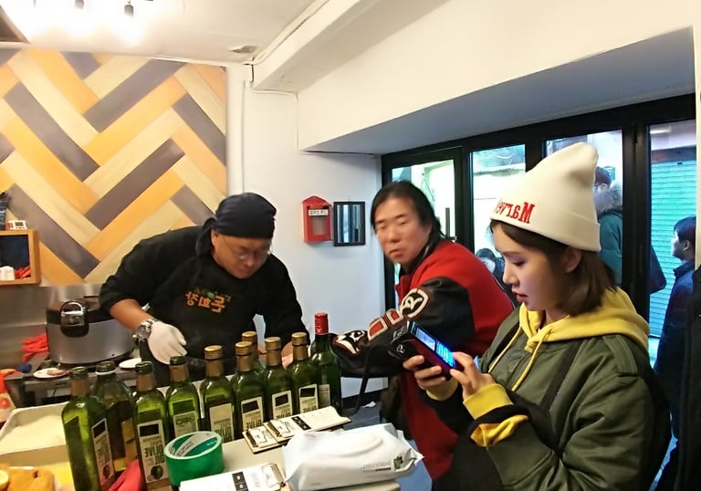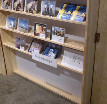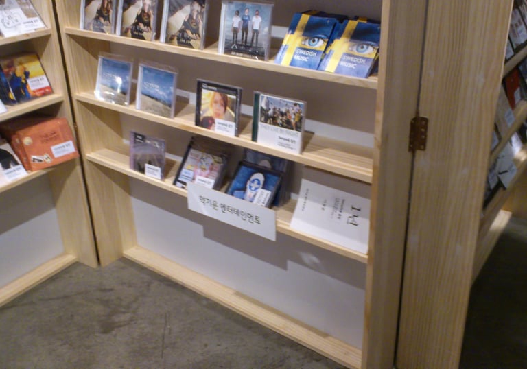This is a photo of records and books on display at the Indie Label Market in Hongdae.